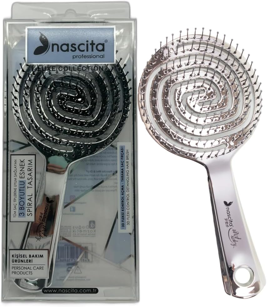 Pro 3D Flexi Kontrol Açma Tarama Saç Fırçası Gümüş – 35