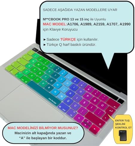 Pro Bar Türkçe Q Klavye Koruyucu Silikon İnce Yıkanabilir Toz ve Sıvı Koruma Uyumlu A1706 A1989 A2159 A1707 A1990 Pembe Yeşil