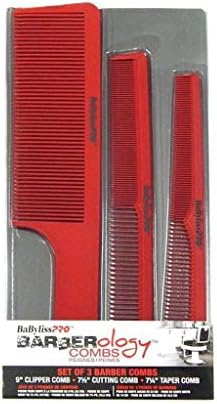 PRO Barberoloji Tarak Seti, harmanlama, kesme makinesi ve tarak üzerine makasla tarak teknikleri için 9 inçlik bir Kesme Tarağı, geleneksel 7″ Kesme Tarağı ve 7¼ ″ Konik Tarak içerir – solma alanını detaylandırmak için mükemmeldir. Bu 3 berber tarağı seti güçlü eğilme mukavemetine sahiptir ve antistatik, ısıya ve kimyasallara dayanıklıdır. Hassas kesim, karıştırma ve solma için bu berber taraklarını kullanın. Kırmızı renk tüm saç tonlarına karşı tezat oluşturur. PRO Barberoloji Tarak Seti