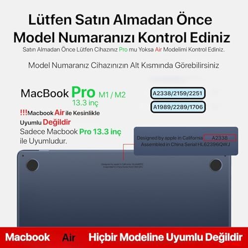 PRO 13 inç ile Uyumlu Sert Kılıf: Üstün koruma ve şık tasarım, alt ve üst takım olarak hem kasa hem ekran koruma Dayanıklı Sert Malzeme: Dayanıklı ve Sert Malzeme: Çizilmelere, darbelere ve günlük aşınmalara karşı yüksek direnç gösteren sert dış yüzeyi ile cihazınızı uzun yıllar boyunca ilk günkü gibi kalmasına yardımcı olur. 1.Sınıf polikarbonat materyal ile güçlü darbe emici yapıya sahiptir. İnce ve Hafif Tasarım: Cihazınızın ince profilini bozmadan ve ağırlığını artırmadan maksimum koruma sağlayan bu kılıf, taşınabilirliği ön planda tutar. Kolay Erişim: Kılıfın hassas kesimleri sayesinde, cihazınızın şarj, kulaklık ve diğer tüm bağlantı noktalarına kolayca ulaşabilir, cihazınızı her zaman verimli bir şekilde kullanabilirsiniz. 'unuzu korurken stilinizi yansıtmak ve uzun ömürlü kullanım sağlamak için ideal bir seçimdir. Pro 13 İnç M1-M2 Serisi İle Uyumlu (A1706/A1708/A1989/A2159/A2251/A2289/A2338) Ürün sadece PRO M1/M2 ile uyumludur. Air modeli ile kesinlikle uyumlu değildir. PRO M1 / M2 13'' ile Uyumlu Sert Polikarbonat Koruyucu Kılıf (A1706/A1708/A1989/A2159/A2251/A2289/A2338) (Super Şeffaf)