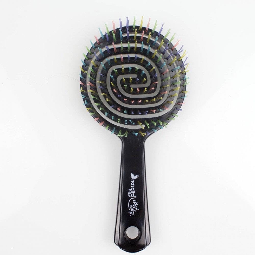 Elastik gövde Islak kuru kullanım Masaj etkisi yaratan pin Koparmadan tarama Pro Üç Boyutlu Oval Saç Fırçası-05 Siyah 1 Paket(1 x 1 Adet)