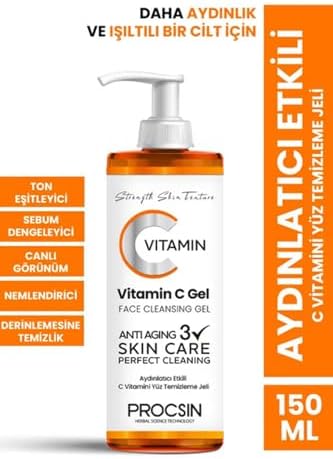 PROCSIN C Vitamini Yüz Temizleme Jeli, Aydınlatıcı & Arındırıcı, Cilt Canlandırıcı & Nemlendirici, Günlük Derinlemesine Temizlik, 150 ML