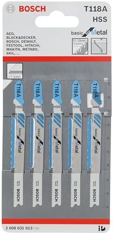 Masif Sacda Kesimler T 118 A Basic for Metal Dekupaj Testeresi Bıçağı, metal üzerinde düz kesimler yapar Frezelenmiş dalga setli dişler, özel gereksinimlerin mevcut olmadığı kesimlerde kullanım için idealdir Komple sertleştirilmiş, yüksek kaliteli HSS bıçak malzemesi, perfore olmayan saclardaki kesimler için uygundur Çok ince ilerlemeli diş aralığı (1, 1-1, 5 mm), 1-3 mm kalınlıktaki çok ince masif saclarda kesime olanak sağlar Professional Dekupaj Testeresi Bıçağı, Gri, 5 Adet