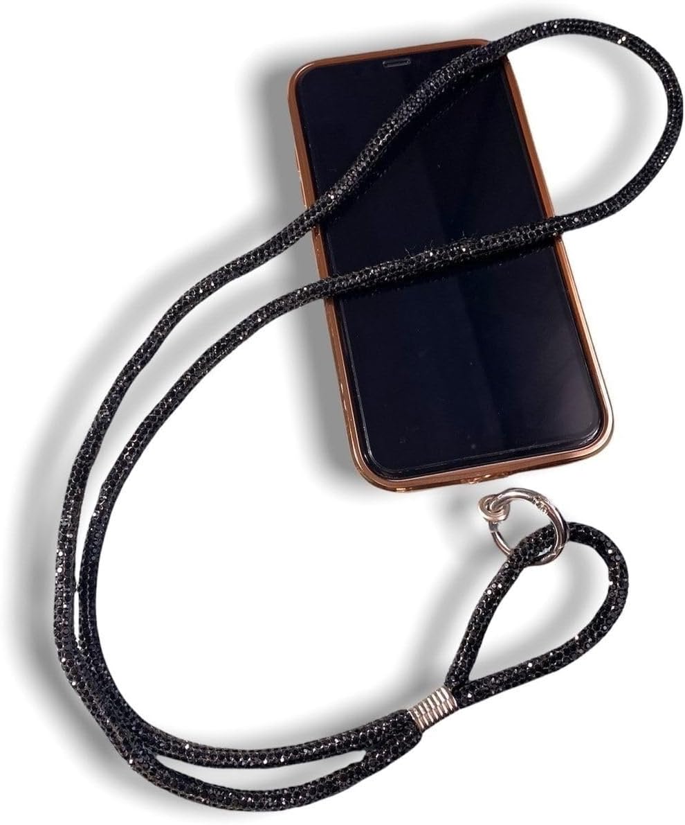 Kapak & Kılıf PSR aksesuar Siyah Taşlı Janjanlı Tam Tur Telefon Boyun Askısı Siyah ile uyumlu PSR aksesuar Siyah Taşlı Janjanlı Tam Tur Telefon Boyun Askısı Siyah ile uyumlu