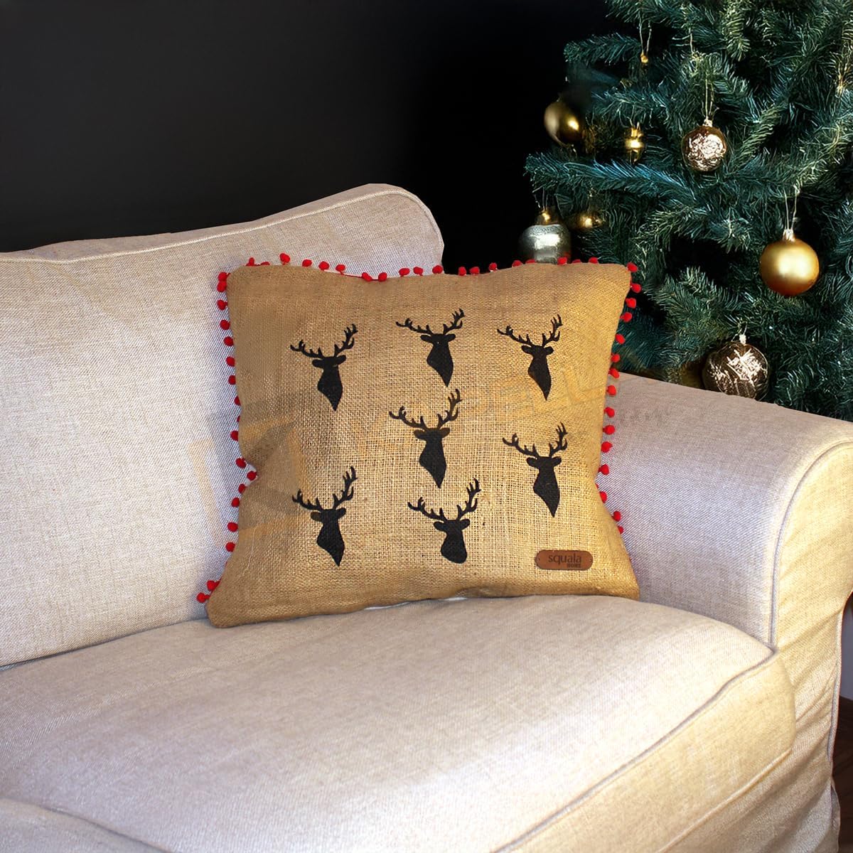 PÜSKÜLLÜ JÜT KIRLENT KILIFI 50*50 SİYAH GEYİK DESEN PÜSKÜLLÜ JÜT KIRLENT KILIFI 50 * 50 SİYAH GEYİK DESEN