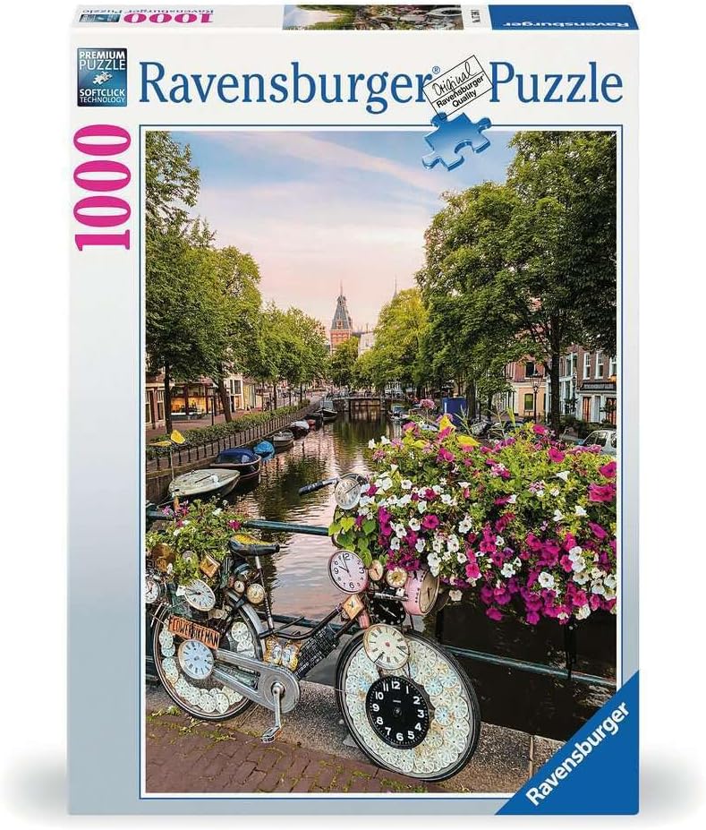 Kesimle birbirine tam uyum sağlayan parçalar ile canlı renkler Puzzle yaş uyumu Puzzle 17596 – Amsterdam'da Bisiklet ve Çiçekler – 1000 parçalı