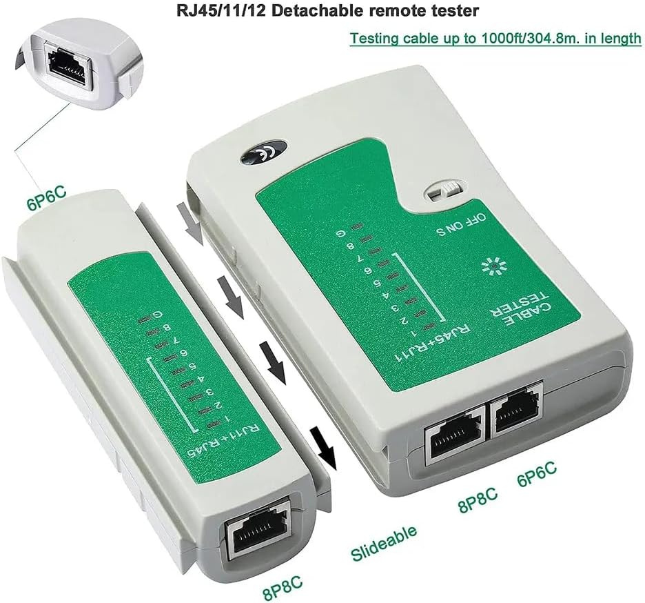 ADSL, CAT5,Cat6,Cat7,Cat8 internet Kablo Tester Kablo Tipleri: CAT5/CAT6/CAT7/CAT8 Soket Tipleri: 8P8C, RJ11 6P6C,6P4C,6P2C Kutu İçerisinde Kılıf Mevcuttur, “Piller Dahil Değildir. ” 1 Adet 9V Pil İle Çalışır PX-8070 RJ-45,RJ-11 Lüks Kablo Test Cihazı, ADSL, CAT5,Cat6,Cat7,Cat8 internet Kablo Tester