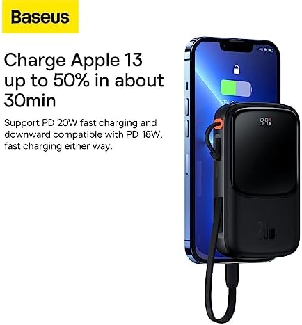 Hızlı ve Güvenli Şarj: Qpow Pro Powerbank, dahili Lightning kablosu ve USB/Type-C çıkışları ile aynı anda 3 cihazı şarj eder. SCP, FCP, QC ve PD protokollerini destekler, 13'ü 30 dakikada %50 şarj eder. Yüksek Kapasite: 10.000 mAh kapasiteyle Qpow Pro, 8'i yaklaşık 3 kez, 11'i yaklaşık 1.3 kez, P50'yi ve 13'ü yaklaşık 1.8 kez şarj edebilir. Gelişmiş Koruma: Aşırı akım, aşırı voltaj, aşırı şarj, yüksek sıcaklık ve elektromanyetik alan gibi durumlara karşı çok katmanlı koruma sağlar, cihazlarınızı güvenle şarj eder. Kompakt ve Taşınabilir: Hafif tasarımı (236 g) ve dahili kablo klipsi ile kolayca taşınabilir, pil durumu için kolay okunabilir ekranı kullanımı pratikleştirir. Q Pow Pro Overseas Edition 10.000 Mah Lcd Display 20W Powerbank (Lightning Kablolu), Siyah