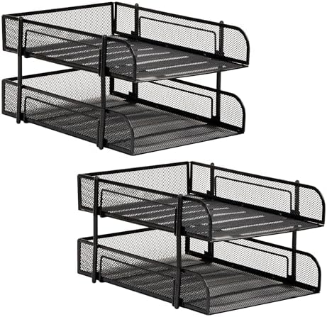 Reader Ağ Koleksiyonu, 2 Katlı Kağıt Tepsisi, Mektup Boyutu, İstiflenebilir, Dosya ve Belge Tutucu, Masaüstü Düzenleyici, Metal Örgü, Siyah