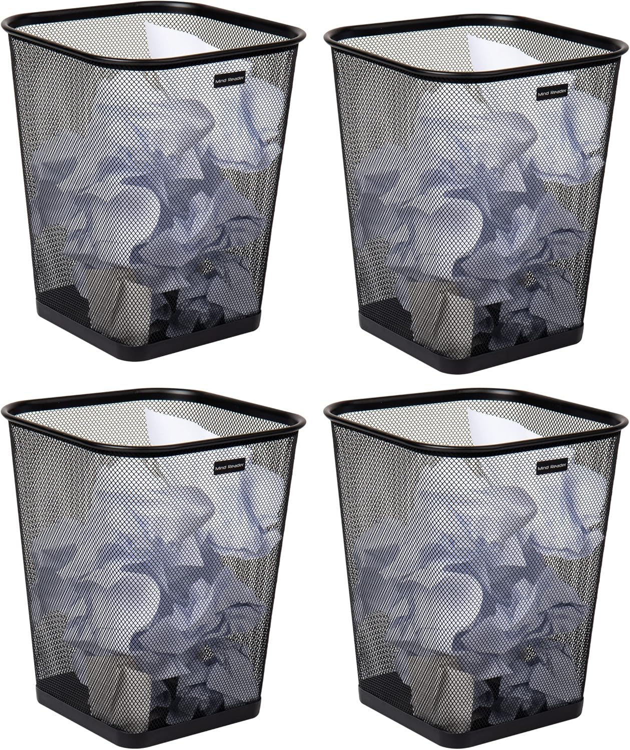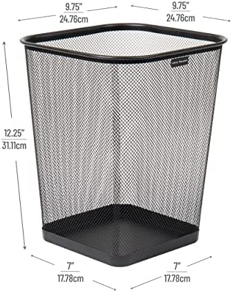 Reader Mesh Çöp Kovası, Atık Kağıt Sepeti, Kare, Ofis, Metal Örgü, 9.8 “U x 9.8″ G x 12.25” H, 4'lü Set, Siyah