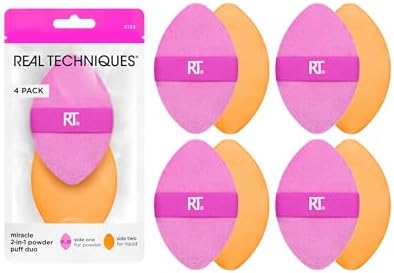 Real Techniques 4 Paket Mucize 2'si 1 Arada Puflar, Çift Taraflı Makyaj Karıştırma Pufu, Tersinir Elastik Bant, Hassas Makyaj Süngeri ve Pudra Pufu, Sıvı, Krem ve Toz Ürünleri İçin