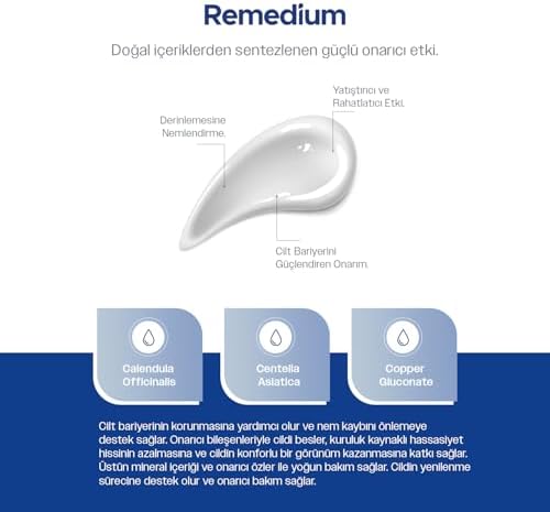 Yoğun nemlendirici içeriği sayesinde cildinizin nem dengesini korur. Doğal bitkisel özler ve mineraller ile cildinize derinlemesine bakım yapar. Cildin yapısını kuvvetlendirerek, sağlıklı ve canlı bir görünüm sağlar. Remedium Cilt Onarıcı ve Tahrişi Hafifletmeye Yardımcı Sos Yatıştırıcı Bakım Kremi, 50 ml