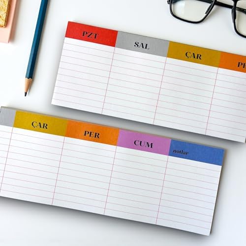 Renkli Haftalık Masa Planlayıcı | Klavye Altı BlokNot – 80 Yaprak, 90 gr Ivory Kağıt, 8×30 cm (Style 1)