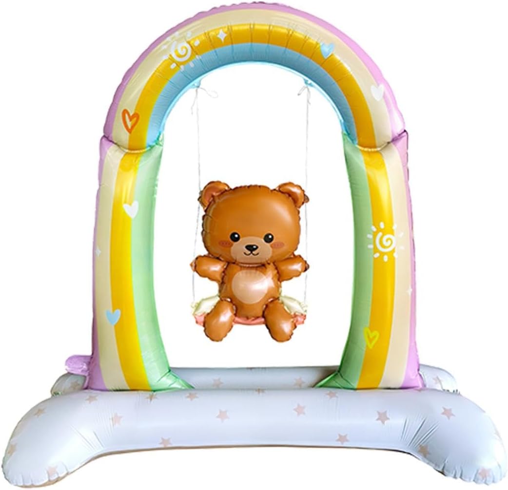 Retro Salıncakta Sallanan Ayıcık Folyo Balon Ayaklı Baby Shower Balon