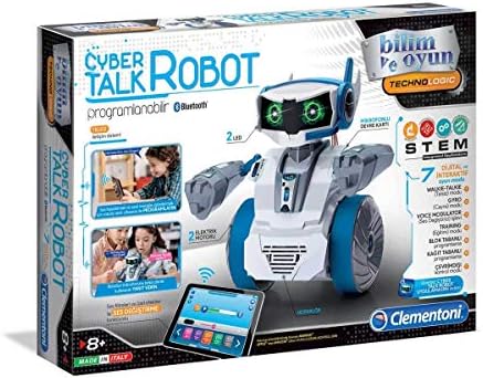 Teknoloji hayranları için, saatler boyunca eğlence sunacak 7 farklı oyun moduna sahip bir robot yapmak için tasarlanmış inanılmaz bir bilim seti Ücretsiz uygulamayı akıllı telefona veya tablete indirin ve robotu blok tabanlı programlamayla programlayarak şartlar, eylemler, döngüler ve prosedürler girin Sesli mesajlar kaydedin, bunları birçok farklı efekt ve ses filtresi uygulayarak değiştirin ve sonra da robota iletin. İstediğiniz zaman onları tekrarlamasını sağlayabilirsiniz Robotun mikrofonu telsiz oyunları için de mükemmeldir ve arkadaşlarınızla uzaktan konuşabilmenizi sağlar Kağıt tabanlı programlayıcı ile, artırılmış gerçeklik yoluyla uygulama tarafından okunabilecek QR kodlu kartlardan yararlanılarak komut dizileri oluşturulabilmektedir Robotik Laboratuvarı – Cyber Talk Oyuncak