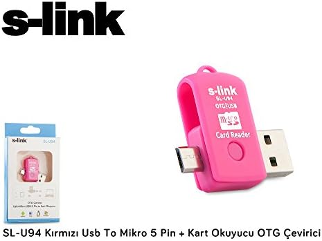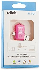 Çevirici Pembe S-Link SL-U94 USB to Mikro 5 Pin + Kart Okuyucu OTG Çevirici, Pembe