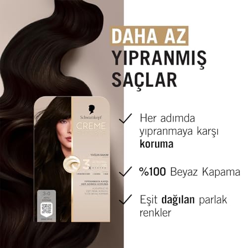 Haptiq System teknolojisi ile geliştirilen üç adımlı bakım sistemi, boyama öncesi, sırası ve sonrasında saçı yıpranmalara karşı korur Boya öncesi güçlendirici serum: Özel formüllü serum, saçta mikro bağlar oluşturarak boyama işlemi öncesinde dayanıklılık sağlar Saçları renklendirir ve koruma sağlayarak sağlıklı görünüm kazandırır Saç onarıcı maske ile bakım: Boyama sonrası uygulanan maske, saç telini kaplayarak bakım etkisini korur Saç Boyası 3-0 Koyu Kestane