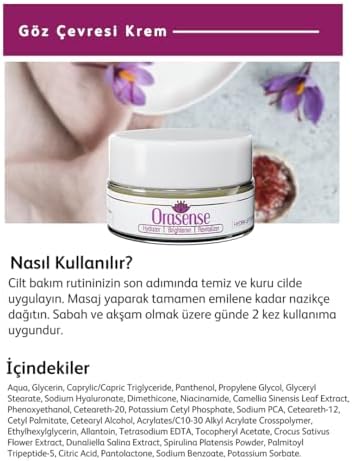 Doğal ve besleyici içerikleriyle cildinizi besler Saffron Glow Eye Cream 20 ml Krem