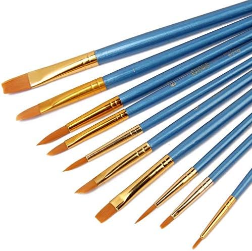 Sanatçı Fırçası Seti, 10'lu Paket Naylon Fırça, Resim, Akrilik, İnce Fırça, Sulu Boya ve Yüz Boyama, Kendin Yap El Sanatları İçin, Mavi