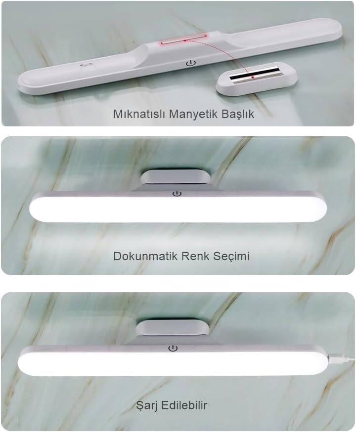 Gün Işığı, Ilık Beyaz ve Beyaz Işık renkleri arasında geçiş yapabilir. Ortama veya duruma göre, hoşlandığınız ışık rengini seçebilirsiniz. Dukunmatik dimmer özelliği ile ışık şiddetini kısabilir veya arrtırabilirsiniz. Hem batarya sarfiyatını azaltabilir ve ambiyans oluşturarak ortam aydınlatması yapabilirsiniz Mıknatıs özelliği sayesinde sabit olarak kullanılabilen armatürü, isterseniz mıknatısından ayırıp dilediğiniz yere taşıyabilir ve metal bir objeye tekrar tutturabilirsiniz. Kurulumu kolaydır. Ayarlanabilir açısı sayesinde dilediğiniz şekilde konumlandırabilirsiniz. Gözleri yormadan ortamı dilediğiniz şekilde aydınlatır. yumuşak ışık göz kamaştırıcı değil, görünür titreme yok, hayalet ışık yok, mavi ışık yok Şarjlı Led Lamba Kablosuz Micro Usb Mıknatıslı 6w Led Işık 3 Farklı Işık Modu Martı Led Aplik (Beyaz)