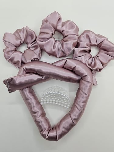 Saten Isısız Saç Şekillendirici ve Saç Tokası (Tek Ebat, Gül Kurusu)