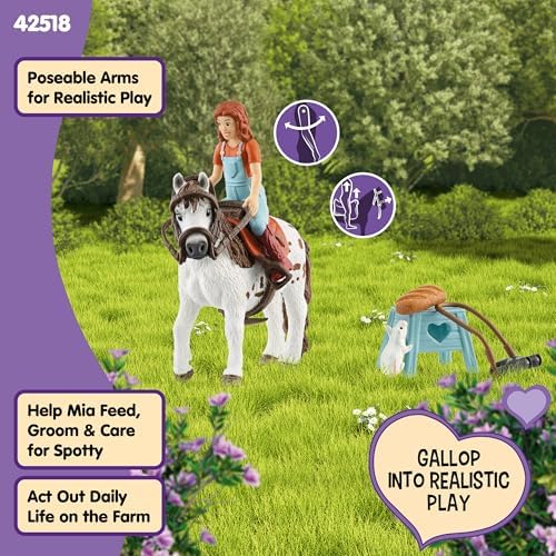 Biriktirilebilir figürler Hayal gücünü geliştiren taklit oyun imkanı 3 yaş üzeri çocuklar için Ürün model numarası 42518 şeklindedir SCHLEICH Mia ve Spotty