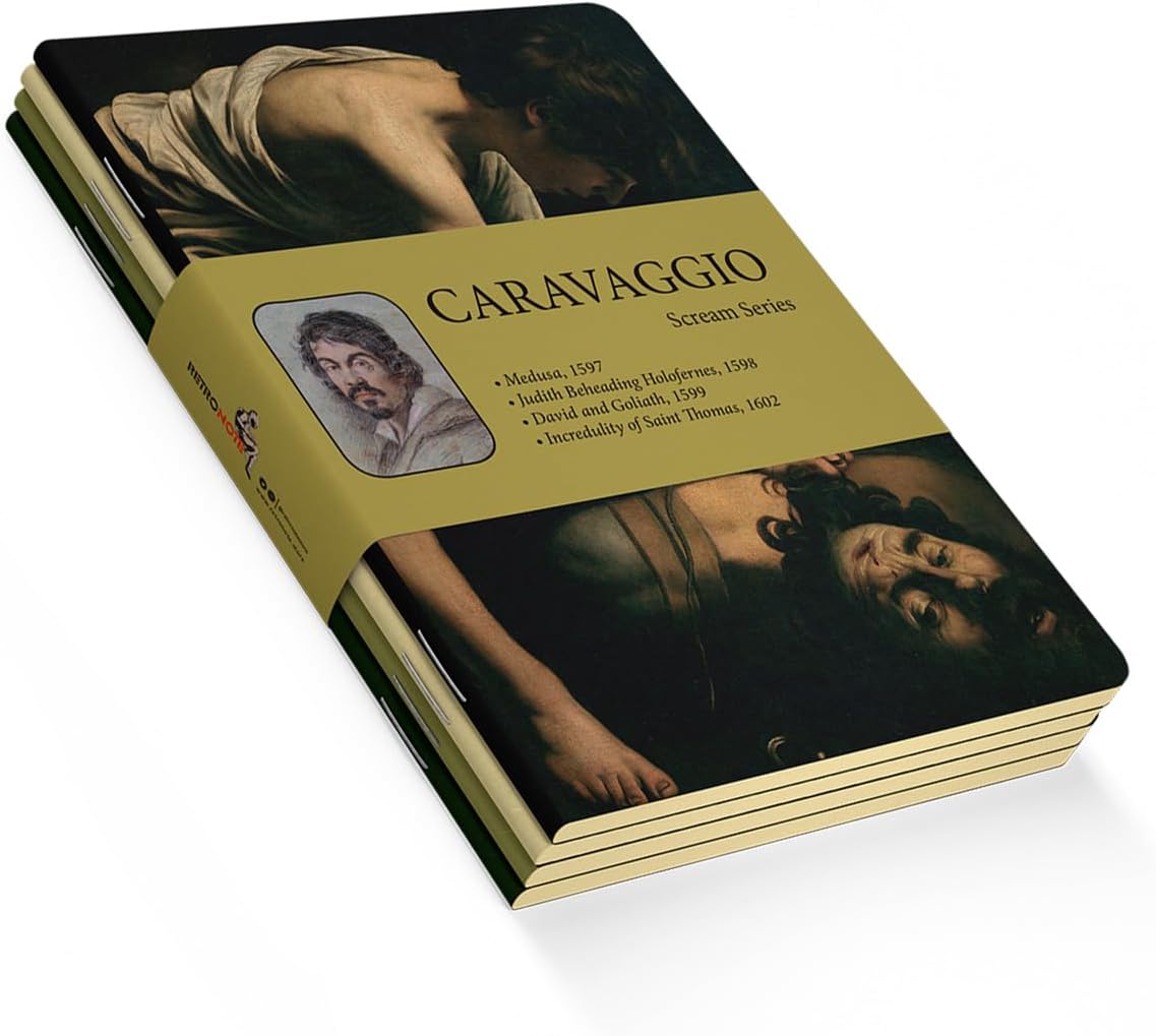 Kağıt / 64 Sayfa – Çizgisiz – Storaenso – 60 gr – Sarı Krem Renk Kapak / Esnek – Tuval Doku – Oval Kenar – Tel Dikiş – İç Baskı Set / 4 Defter – Toplam 256 Sayfa – 14 x 21 x 3 cm – Toplam 200 gr Scream Series – A5, Caravaggio 4'lü Defter Seti II, Çizgisiz, Toplam 256 Sayfa, Her biri 64 Sayfa, Tel Dikiş, Esnek Kapak, Oval Kenar, Tuval Doku, 60 gram, Sarı Krem Renk