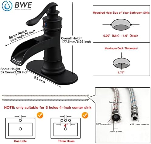 【İşe Yarar İpuçları】Açılır tahliye ve kaldırma çubuğu dahil değildir, lütfen satın almadan önce drenaj setinin gerekip gerekmediğini onaylayın, gerekirse lütfen ASIN: B08BRD3M6Q kontrol edin 【Eşsiz Şelale Musluğu】Bu şelale banyo musluğu, sizin için güzel bir su sunumu ile gelen berrak ve sabit bir laminer akış sağlar 【Kullanımı Kolay】Su akışı ve sıcaklık ayarı için kullanım kolaylığı için tasarlanmış sıcak ve soğuk işaretli tek kulplu banyo musluğu, tüm standart sıcak ve soğuk su basınç sistemlerine bağlanabilir 【Sağlam Pirinç Yapı】Banyo lavabo musluğu, dayanıklılığı sağlamak için yüksek kaliteli katı pirinçten yapılmıştır, bu da musluğun banyonuzda kalıcı olarak yeni bir görünüm sunmasını sağlar 【Yağlı Fırçalanmış Bronz Kaplama】Bronz banyo musluğu, banyonuzda antik bir görünüm yaratır. Dayanıklı yapısından modern dekoratif tasarımına kadar bu musluk, banyonuz için ideal bir parçadır. 1 veya 3 delikli kurulumlarla uyumludur 【Kurulumu Kolay】Standart 3/8 inç sıkıştırma dişleri ile bu tek delikli banyo musluğunun kurulumu ve temizliği çok kolaydır. Kolay tasarımı, araç gereç kullanarak hepsini kendiniz kurmanızı mümkün kılar 【Ölçüler】 Musluk Ucu Uzanımı: 12 cm, Musluk Ucu Yüksekliği: 5,7 cm, toplam yükseklik: 17,7 cm, Montaj Deliği Çapı: 2,51 cm ila 4,6 cm, Maksimum yerleşim kalınlığı: 4,5 cm Şelale çıkışı, tek kollu lavabo musluğu, lavabo armatürü, orb yağı ovulmuş bronz, 9233
