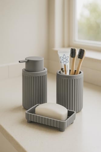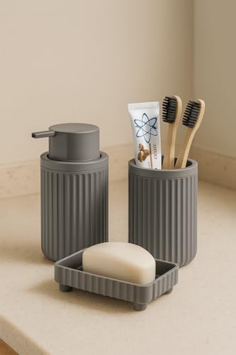 Serisi Gri Banyo Seti, 3 Parça Oval Akrilik Sabunluk Fırçalık ve Sıvı Sabunluk Takımı – 3319