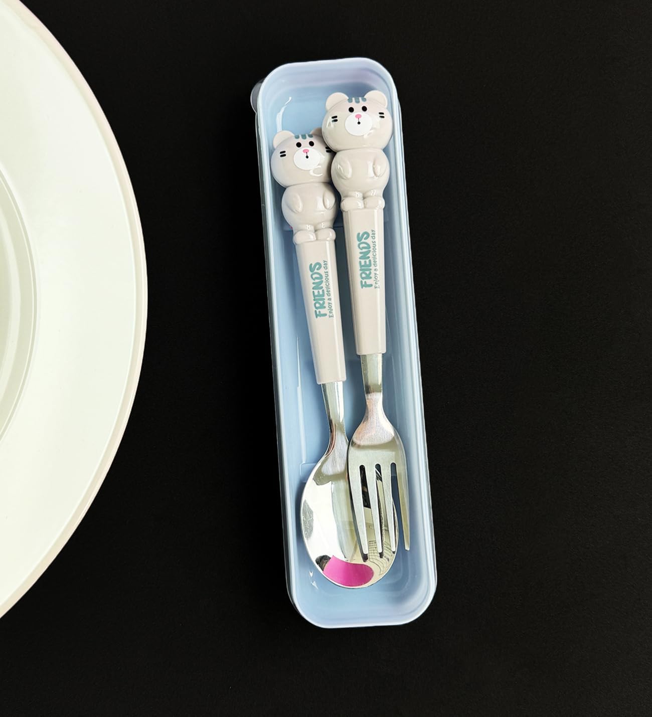 Sevimli Hayvan Figürlü Çatal Kaşık Seti (Kedi)