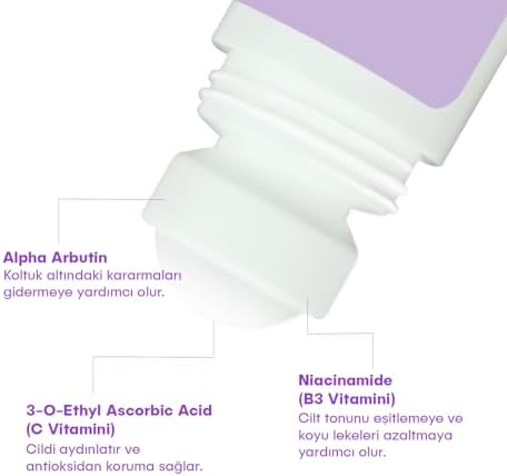 Hassas, egzamalı, tahriş olmuş ve rozalı ciltler dışında tüm cilt tiplerİ için uygundur. Alpha Arbutin: Ciltte melanin üretimini düzenleyerek koyu lekelerin görünümünü azaltmaya yardımcı olur. Vitamin C: Güçlü antioksidan etkisi ile cildi aydınlatır ve koltuk altı renk tonunu eşitler. : Cilt tonunu dengelemeye, cilt bariyerini güçlendirmeye yardımcı olur. She Vec THE FLOOR – Terleme Önleyici Beyazlatma Etkili İz Bırakmayan Antiperspirant 75ml