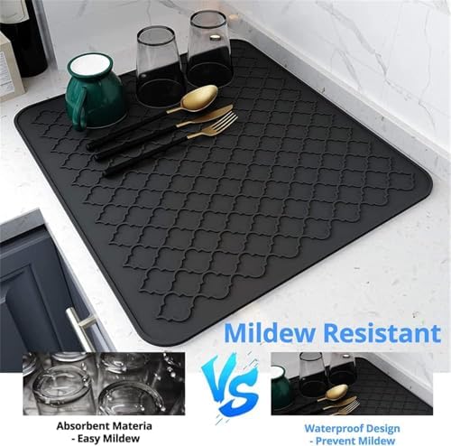 Silikon bulaşık kurutma matı, Kaymaz ve Kolay Temizlenebilir Silikon Mat, Dayanıklı, Bulaşıklar ve Tezgah Üstü İçin, Buzdolabı Çekmece Astarı (Gri 40x30cm)