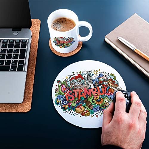 Simgeleri Tasarımlı Kupa Fincan ve Mouse Pad Seti 20 x 20 cm