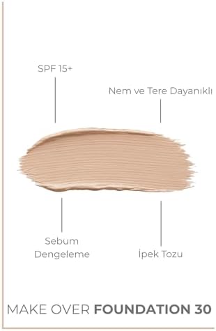 Ayarlanabilir orta ila yüksek kapatıcılığa sahip akışkan, hafif doku SPF 15 korumalı doğal mat bitiş Yağ kontrolü ve ter direnci ile uzun süreli kullanım sağlar Sıvı Fondöten 40 ml No:30 Sıvı Fondöten 40 ml No:30