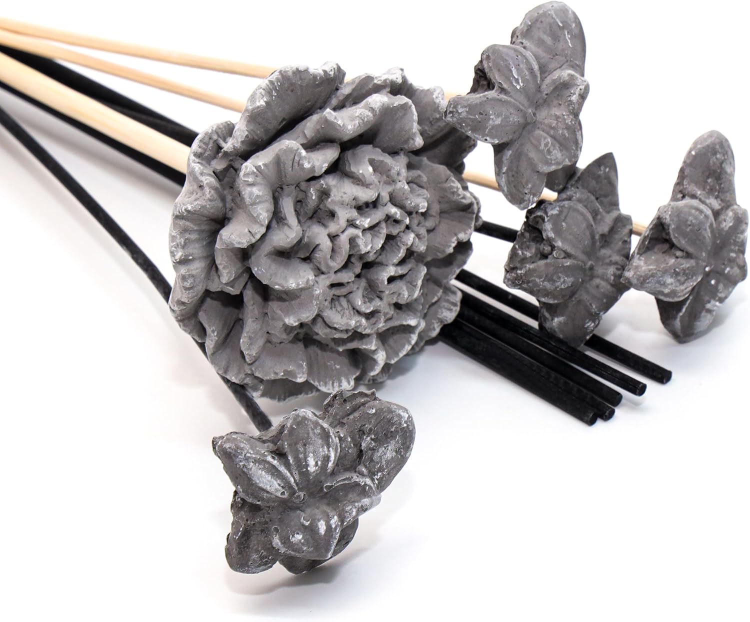 Siyah Karışık Çiçek Taşlı 10'lu Doğal Bambu Kamış Seti