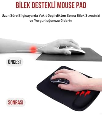 Siyah Mouse Pad – Bilek Destekli, Dayanıklı Ergonomik Tasarım