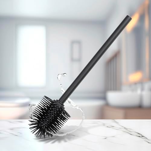 Siyah saplı silikon yedek fırça Ø 8 cm Silikon yedek başlıklı yedek tuvalet fırçası Siyah