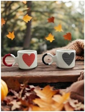üretici: SİYAH VE KIRMIZI KALP DESENLİ ÇAY KAHVE 2 Lİ EL YAPIMI SERAMİK KUPA
