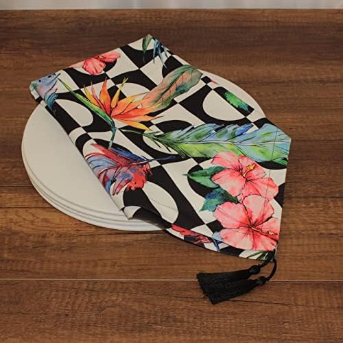 – Püsküllü Dijital Baskılı Runner Amerikan Servis – 40×150 cm – SİYAH&BEYAZ EGOMETRİK ARKA PLAN