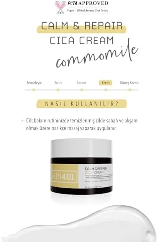 Dermatolojik Olarak Test Edilmiştir Skin401 Sakinleştirici ve Bariyer Onarıcı Centella Krem 50ml