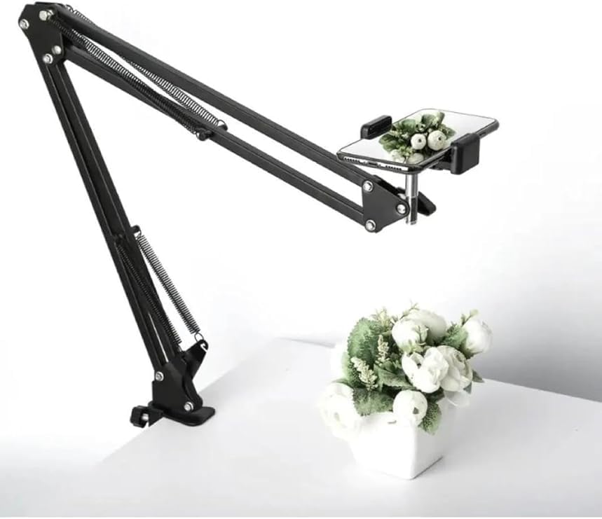 SMAYLİNG 360° Ayarlanabilir Masaüstü Üst Çekim Telefon Standı – Süspansiyon Kollu Kol – Canlı Yayın, Yemek Çekimi, Üstten Çekim, YouTuber & Yayıncı İçin – Bluetooth Kumandalı