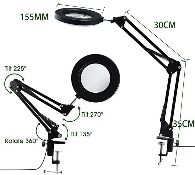 SMAYLİNG Büyüteçli LED Masa Lambası – 5X HD Optik Cam, 3 Işık Modu, Ayarlanabilir Kol, USB Güç, Mandallı Masa Tipi Çalışma ve Hobi Lambası – Elektronik, Makyaj, Okuma, Modelleme İçin