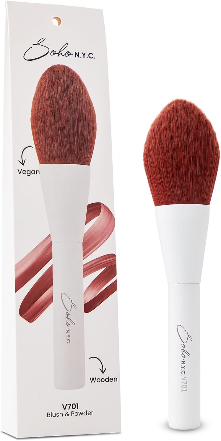 Vegan Ahşap saplı Sentetik kıllar Hassas ciltlere özel SOHO N.Y.C. Düz Pudra-Allık Makyaj Fırçası-V701