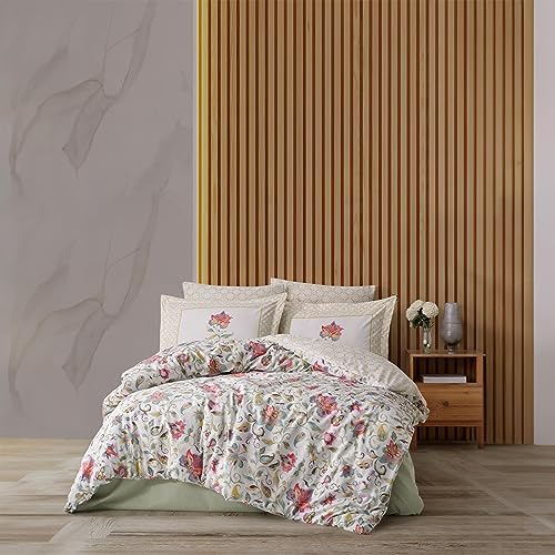 Yumuşak dokulu Kolayca çıkarılıp yıkanabilir Yatak odası dekoruna uyumlu Soley | Leticia |%100 Pamuklu Çift Kişilik Nevresim Takımı Yeşil