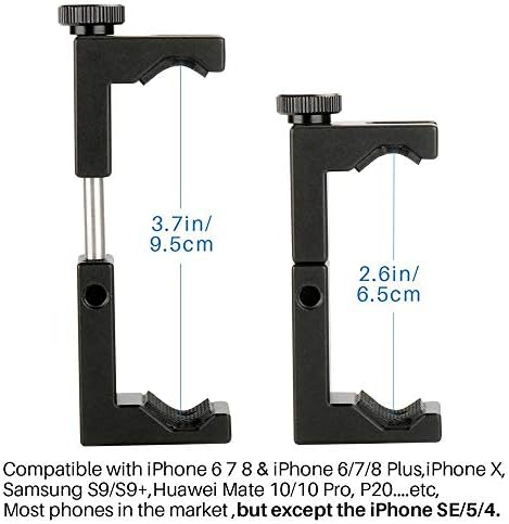66-94mm genişliğindeki telefonlarla uyumlu, Alüminyum alaşım malzeme, Üç adet 1/4″ inç vida yuvası, Standart cold shoe mount yuva ST-02S Telefon Standı