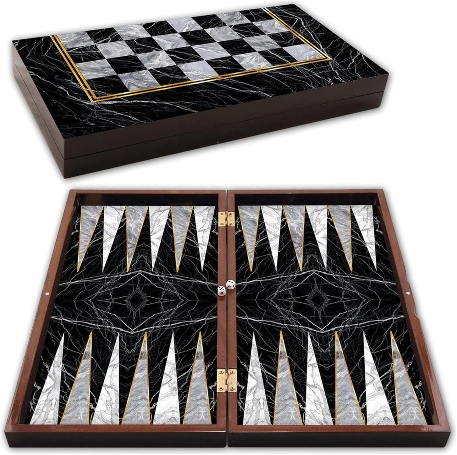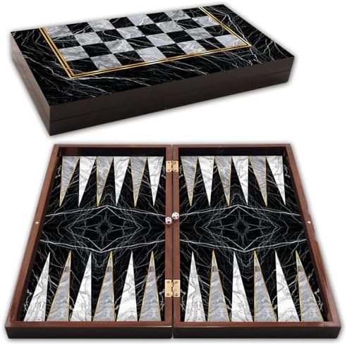 Star Tavla Büyük Boy Polyester Siyah Mermer Desenli Tavla 25x49x6 cm. Backgammon