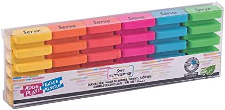 Yüksek kaliteli malzeme Daha az silgi atığı PVC içermez ve kimyasal içermez Detaylı silme için 62 kenar Kombinasyon ve oyun Steps Silgi Fosforlu 6li Pet