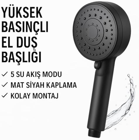 Store Siyah Duş Başlığı – Yüksek Basınçlı, Su Tasarruflu, Kolay Montaj, Kireç Önleyici, Banyo Aksesuarı