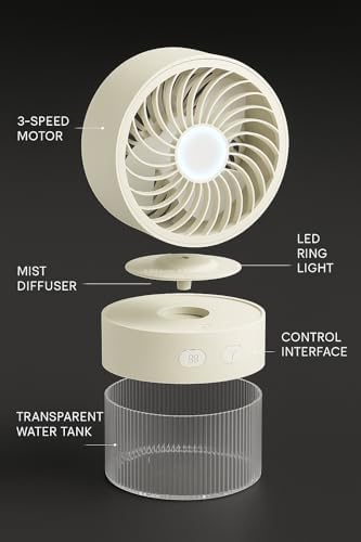 Su Hazneli, Soğuk Buhar Üfleyen Masaüstü Vantilatör, Sessiz Mini Klima Fanı, 3 Kademeli Hız Ayarlı, LED Işıklı, Serinletici Hava Nemlendirici, Kompakt ve Taşınabilir Tasarım