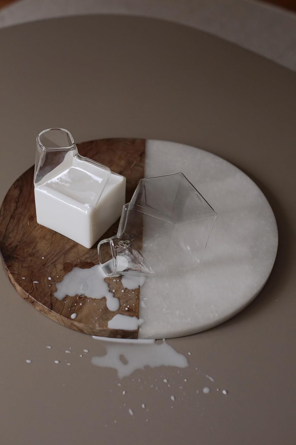Süt Kutusu Tasarımlı Cam Bardak, 350 ml, Borosilikat Dayanıklı, Kahve Bardağı